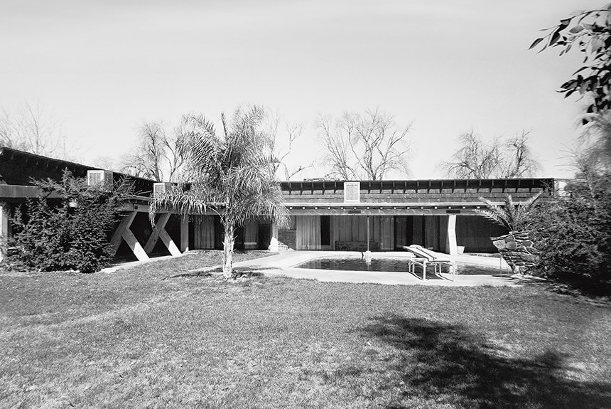 His Osborn Road property, a striking example of Prairie-style architecture, had been built in 1948, set amidst what was then a vast citrus orchard, covering an area that has since developed into suburban Phoenix. In fact, when Mr. Hubbard first arrived in 1954, the site still featured neat rows of some forty navel orange trees from that original orchard.